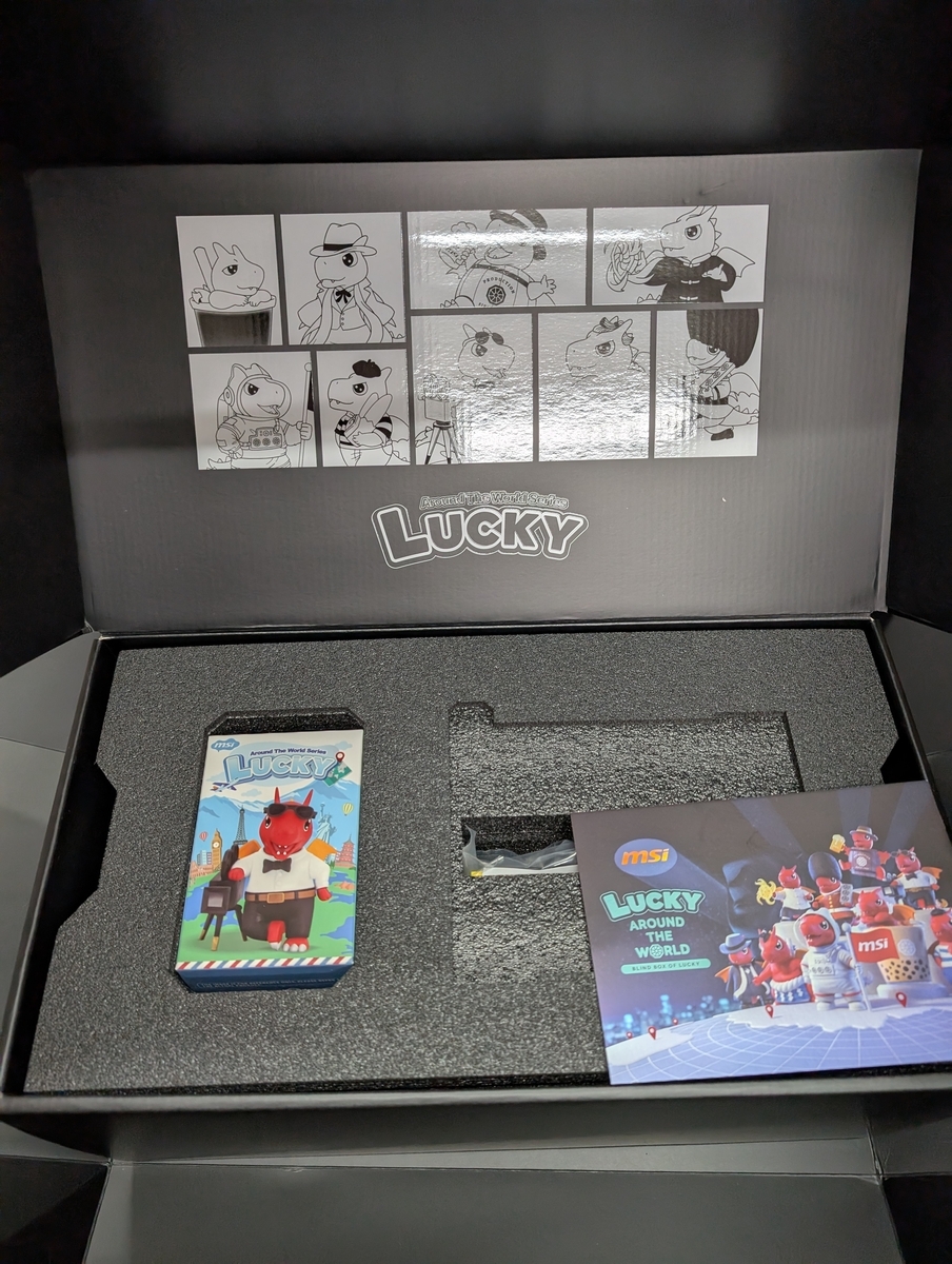 今回買ったのはLaunch Editionという初回限定版みたいなやつで、MSIのマスコットであるLucky君のランダムフィギュアが同梱されている。シークレットもあるらしいが、私はHollywood Lucky君がついてきました。しかし、52万もするグラボのおまけに対して"...collect them all."とは冗談も大概にしてほしい。